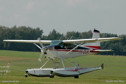 - De Cessna 180 en 185 Skywagon, de eerste “utility” vliegtuigen binnen het gamma van eenmotorige Cessna’s, werden standaard geleverd met een wielonderstel met staartwiel maar konden desgewenst uitgerust worden met vlotters of ski’s. Amfibische vlotters waren als retrofit beschikbaar. Nu zijn watervliegtuigen in onze contreien eerder zeldzaam, amfibievliegtuigen zijn dat des te meer. Toch kunnen we de Cessna 185 PH-DUK vermelden (sinds 10 maart 2020 op het Belgisch Civiel Register ingeschreven als OO-DUK) die de Fly-in van Schaffen bezocht in 2002 en 2010. Het was zonder twijfel één van de meest in het oog springende deelnemers !