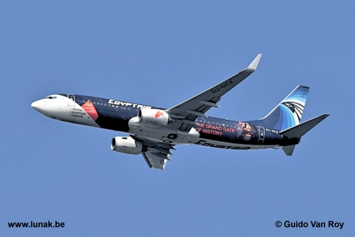 Op Paaszondag 5 april 2026 konden we de fraaie special paint Boeing 737-866 SU-GCZ fotograferen vanuit de tuin. Het toestel was op weg van Caïro (HECA) naar Brussels Airport (EBBR) onder vluchtnummer MS725, één van de zeldzame keren dat we deze toch wel speciale vogel in België konden bewonderen.