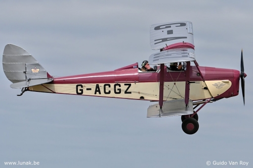Voor het eerst in Schaffen maar ietwat onopvallend geparkeerd nabij de SV-4’s was de DH60G III Moth G-ACGZ, een toestel dat op het eerste zicht voor een DH82 Tiger Moth kan doorgaan maar bij nader toezien toch merkelijk verschilt door o.a. de rechte vleugels. Door de oorspronkelijke De Havilland Gipsy motor met rechtopstaande cilinders om te keren (dus hangende cilinders) ontstond de Gipsy III motor, die de piloot een beter zicht over de motorkap verschafte. Deze krachtbron werd voor het eerst toegepast op de DH60G III Moth, een Moth variant die slechts op 57 exemplaren gebouwd werd. Er volgden nog 97 stuks van de gelijkaardige DH60G III Moth Major (met als belangrijkste verschil de motor: de Gipsy III werd vervangen door de verbeterde Gipsy Major met iets meer vermogen). Een totaal van 154 gebouwde toestellen is natuurlijk een peulschil in vergelijking met de iets later ontwikkelde DH82 Tiger Moth (8868 exemplaren). Bedenk daarbij dat er nog amper een handvol DH60G III’s bestaan (waarvan een 5-tal in thuisland Groot-Brittannië) en je weet dan dat we hier oog in oog stonden met een echt stuk luchtvaartgeschiedenis.